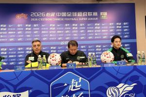 體育資訊04月16日訊 中超第6輪浙江vs北京國安賽前,浙江隊主帥阿洛伊西攜隊員錢杰給出席賽前發(fā)布會。