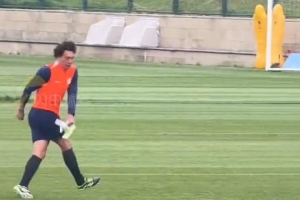 據(jù)“閃電新聞”報(bào)道,在今日泰山隊(duì)賽前訓(xùn)練中發(fā)生了有趣一幕,在傳遞球訓(xùn)練時(shí)王大雷突然“前插”,從隊(duì)友陳澤仕腳下?lián)屜缕で蚝笸瓿梢荒_射門(mén)。