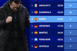 體育資訊4月17日訊 歐聯(lián)杯1/4決賽,維拉兩回合雙殺博洛尼亞闖進半決賽。對于維拉主帥埃梅里而言,他實現(xiàn)了一項了不起的成就。進入新世紀(jì),埃梅里共9次闖進歐戰(zhàn)半決賽,僅次于穆里尼奧、安切洛蒂以及瓜迪奧拉3位名帥。