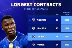 體育資訊4月17日訊 切爾西已經(jīng)官宣同凱塞多續(xù)約至2033年,《轉(zhuǎn)會(huì)市場(chǎng)》統(tǒng)計(jì)顯示他也并列當(dāng)前合同最長(zhǎng)球員第三位。
