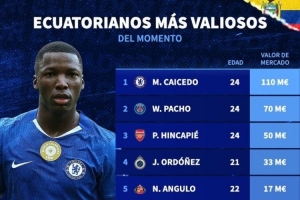 體育資訊4月18日訊 切爾西已經(jīng)官宣同厄瓜多爾后腰凱塞多續(xù)約,《轉(zhuǎn)會(huì)市場(chǎng)》也統(tǒng)計(jì)了厄瓜多爾球員身價(jià)情況,共計(jì)6人身價(jià)超1000萬歐元。