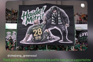 體育資訊4月18日訊 中超第6輪,浙江隊主場0-0戰(zhàn)平北京國安,本場比賽前浙江隊球迷打出TIFO,聲援被停賽的外援米特里策。