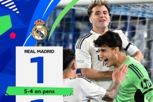此役上半場以利亞·李為巴黎圣日耳曼U19先拔頭籌,下半場第83分鐘利貝托·納瓦斯克斯扳平比分,兩隊(duì)最終戰(zhàn)成1-1平局,進(jìn)入點(diǎn)球大戰(zhàn),最終皇馬U19在點(diǎn)球大戰(zhàn)中5-4取勝,晉級決賽。