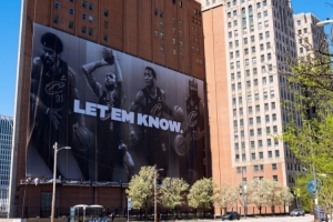 體育資訊4月18日訊 今日,ESPN克利夫蘭分臺(tái)官推曬出一張照片,展現(xiàn)騎士主場(chǎng)附近建筑上為迎接季后賽而懸掛的全新巨幅海報(bào)。