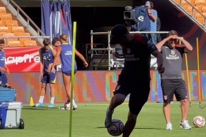 馬競正在備戰(zhàn)這場決賽,馬競主帥西蒙尼在賽前的訓練中顛球,展現(xiàn)了自己的嫻熟腳法。