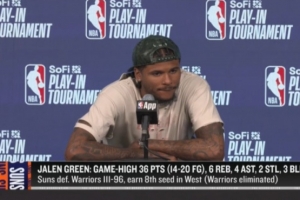 體育資訊4月18日訊 NBA附加賽,太陽(yáng)111-96擊敗勇士,賽后杰倫·格林接受了媒體采訪,以下為完整采訪。