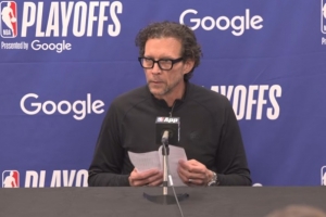 斯奈德:“我覺得我們本可以打得更好。第一場比賽總是充滿了高強度的身體對抗,我認為球隊在進攻端對這種強度的回應(yīng)還不錯。但有時候情況會陷入掙扎。你知道的,贏球的關(guān)鍵,或者說我們這支球隊的特質(zhì),就是不斷跑動和轉(zhuǎn)移球。我們并非沒有去執(zhí)行,只是需要在這方面做得更多。顯然,我們在面對一支極其出色的球隊。這只是系列賽的第一場,我們會回去仔細復(fù)盤錄像,更具體地找出那些亟待改進的細節(jié)。”