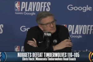 體育資訊4月19日訊 NBA季后賽西部首輪,森林狼105-116不敵掘金。賽后,森林狼主教練芬奇接受了采訪,以下為采訪全文。