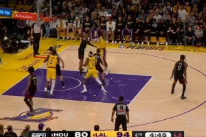 GIF-詹姆斯籃下背轉(zhuǎn)身強(qiáng)打左手勾手