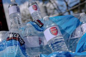 體育資訊04月19日訊 據(jù)記者James Olley報(bào)道,有曼城球迷在阿提哈德球場外售賣貼有阿森納隊(duì)徽的礦泉水,售價(jià)2鎊一瓶。