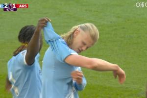體育資訊04月20日訊 衣服都撕爛了!哈蘭德打底緊身衣被加布里埃爾扯壞,之后與因卡皮耶沖突。