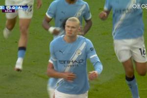 比賽第65分鐘,奧賴(lài)?yán)麢M敲,羅德里中路搶點(diǎn)被因卡皮耶干擾,哈蘭德后點(diǎn)側(cè)身凌空包抄破門(mén)!曼城2-1領(lǐng)先阿森納!