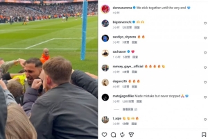 他也在賽后通過(guò)社媒曬出自己和曼城球迷相擁的動(dòng)態(tài),并配文:“我們團(tuán)結(jié)到了最后一刻?!?/p>