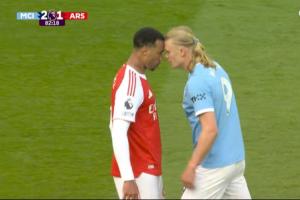 體育資訊04月20日訊 本輪英超焦點戰(zhàn)曼城2-1戰(zhàn)勝阿森納,比賽第83分鐘,哈蘭德和加布里埃爾頂牛導致兩隊球員之間爆發(fā)了沖突,二人各吃一張黃牌。