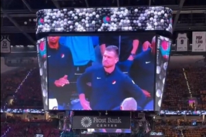 賽前介紹環(huán)節(jié),球迷給馬刺舊將、開拓者主教練斯普利特送上歡呼。