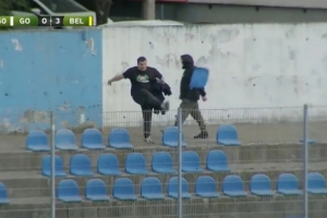 新戈里察目前在斯洛文尼亞第二級(jí)別聯(lián)賽中排名墊底,距離安全區(qū)有九分之差。當(dāng)ND貝爾廷齊的多米尼克·德?tīng)柨舜蛉氲谌驎r(shí),一名新戈里察球迷一腳將看臺(tái)座椅踢飛到了空中。