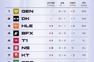 體育資訊4月20日訊 外網(wǎng)分享2025LCK第三周和2026LCK第三周戰(zhàn)隊(duì)排行的對(duì)比,只有HLE仍在前三。