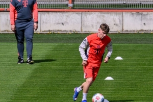卡爾正在進行有球訓(xùn)練。為了做好準(zhǔn)備,這位進攻型中場在周一——球隊休息日,也是在奪冠后的第二天——在康復(fù)教練本杰明·索默的指導(dǎo)下,于塞貝納大街的訓(xùn)練基地進行了一次額外的訓(xùn)練。上午10點03分,卡爾精神抖擻地踏上了球場。在30分鐘的訓(xùn)練中,這位德國國腳在訓(xùn)練中肌肉拉傷11天后,首次能夠進行帶球練習(xí)。這位進攻天才在恢復(fù)跑步兩天后,就已經(jīng)能夠繞著迷你錐進行帶球訓(xùn)練了。隨后,他進行了多次不同速度的跑步練習(xí),并進行了穩(wěn)定性訓(xùn)練。
