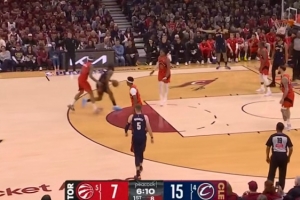 這明顯故意的!米切羅掩護推倒丹尼爾斯 然后跨人越過后者頭頂吃T