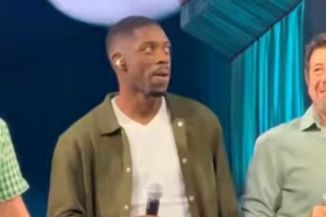 現(xiàn)場觀眾熱烈歡迎登貝萊的到來,向這位法國國腳致意,他們高喊:“奧斯曼、金球獎!”