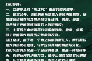關于堅決反對“浙江FC”更名的聯(lián)合聲明