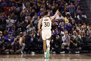 算上這5記三分,庫里本賽季三分命中數(shù)來到154記,反超米切爾(153記),重回榜首。