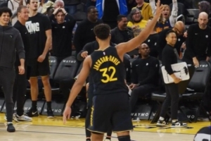 勇士官方表示,這是TJD生涯首個(gè)三分球。