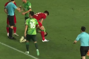 暖心小馬??!馬丁內(nèi)利回頭看到有人在追道曼,急忙沖刺卡身位保護(hù)