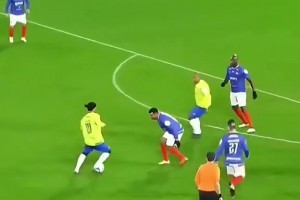 第35分鐘,熱菲尼奧直塞,姆本扎挑過(guò)門(mén)將后面對(duì)空門(mén)被后衛(wèi)解圍